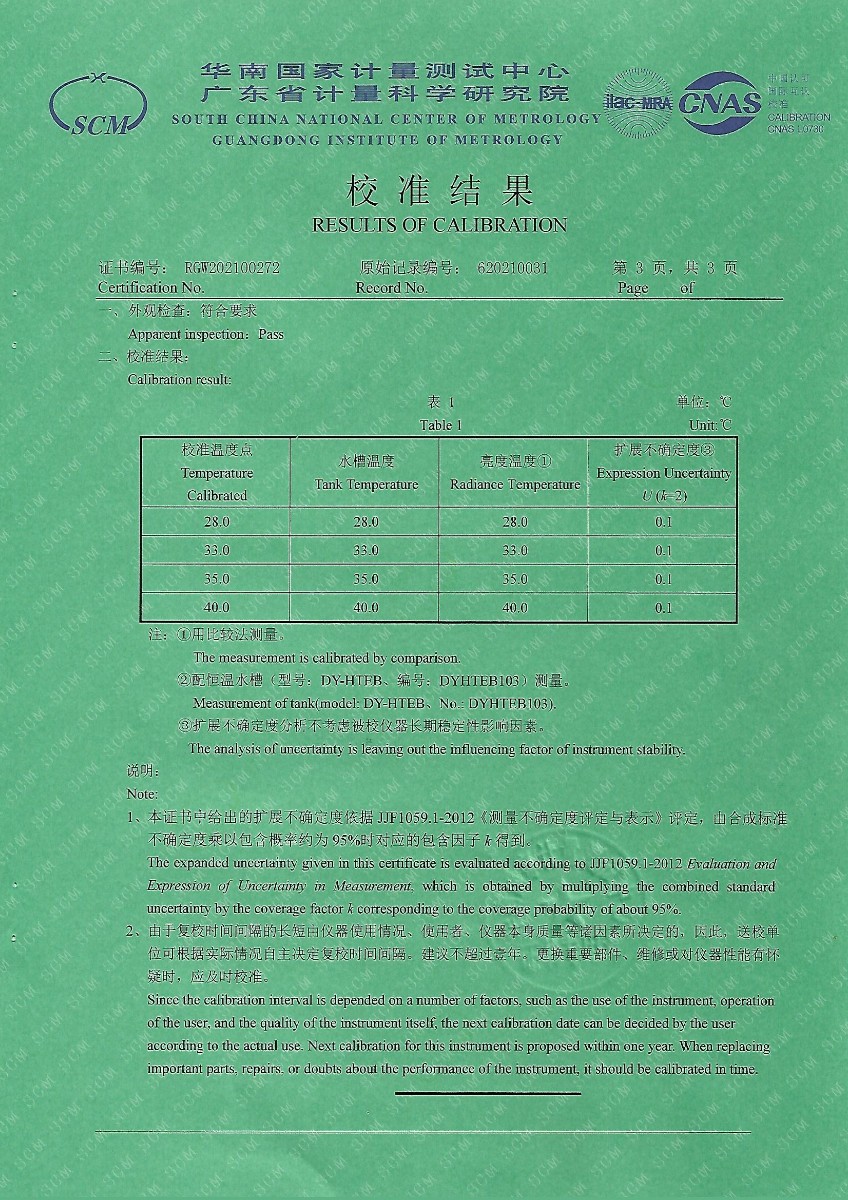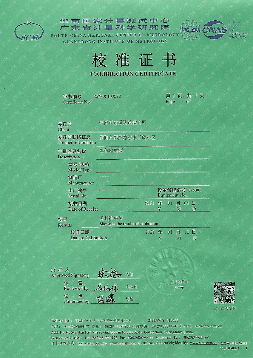 | 上一條:長沙彼樂機(jī)電設(shè)備有限公司-體溫黑體爐耳溫部分 | 下一條:智能干體儀(六位半精度)校準(zhǔn)證書 |