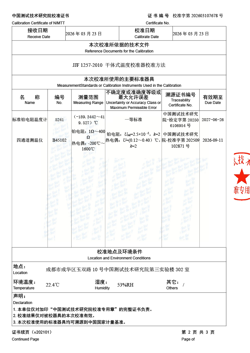 干體爐-校準(zhǔn)證書 2026-3-25 本文被閱讀 345 次