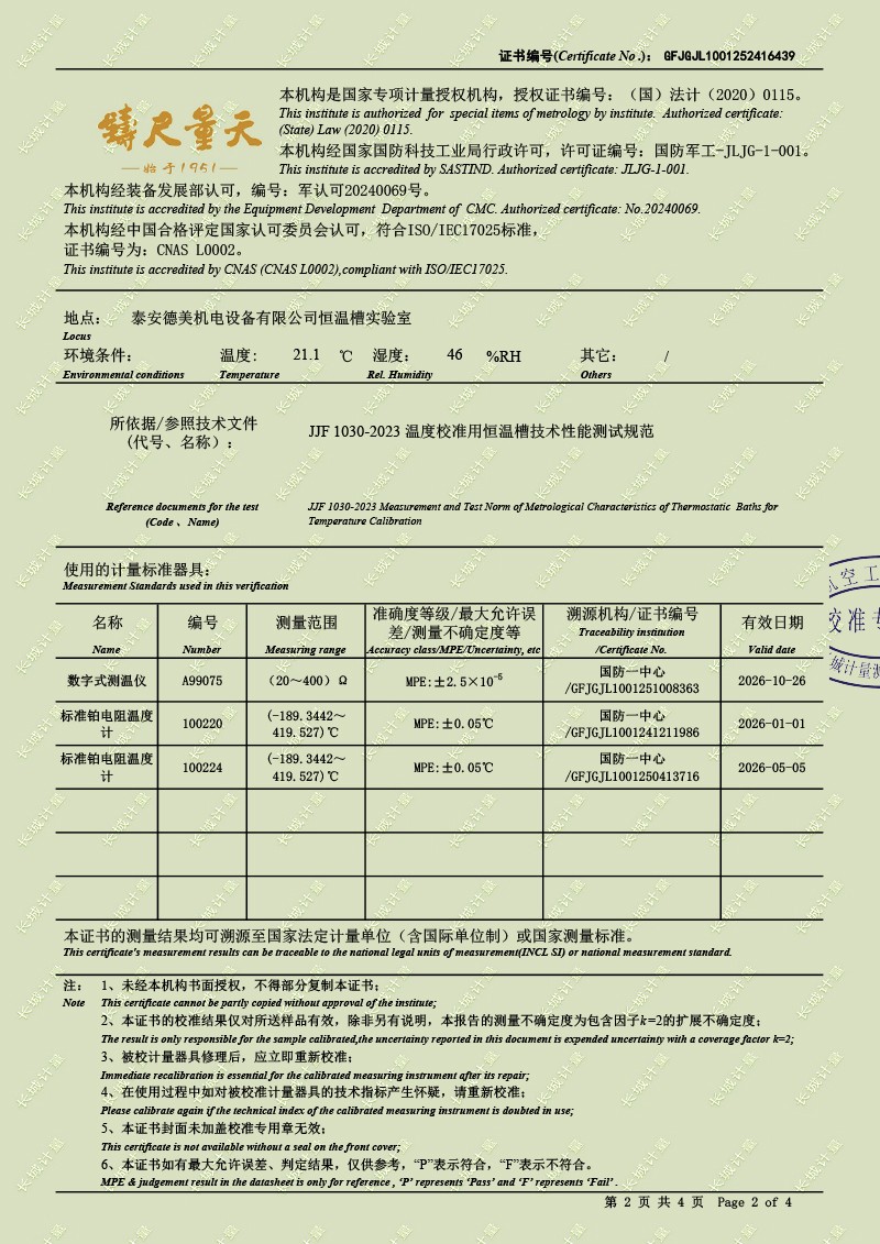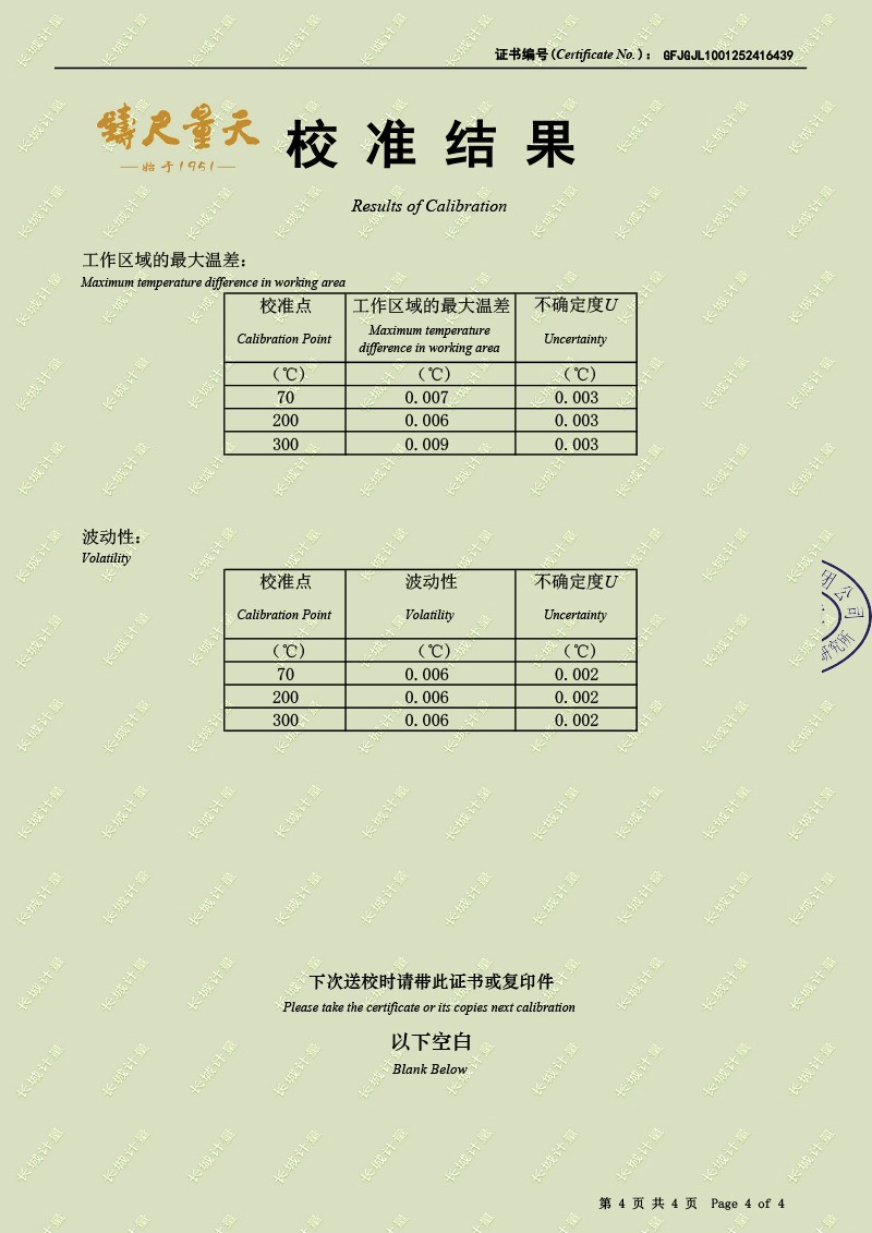 高精度恒溫油槽-校準(zhǔn)證書 2025-12-19 本文被閱讀 65 次