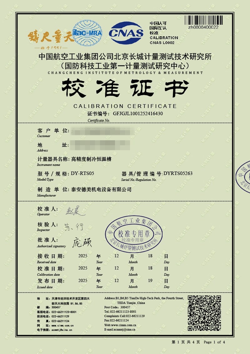 高精度制冷恒溫槽(0~100℃)-校準證書 2025-12-19 本文被閱讀 85 次