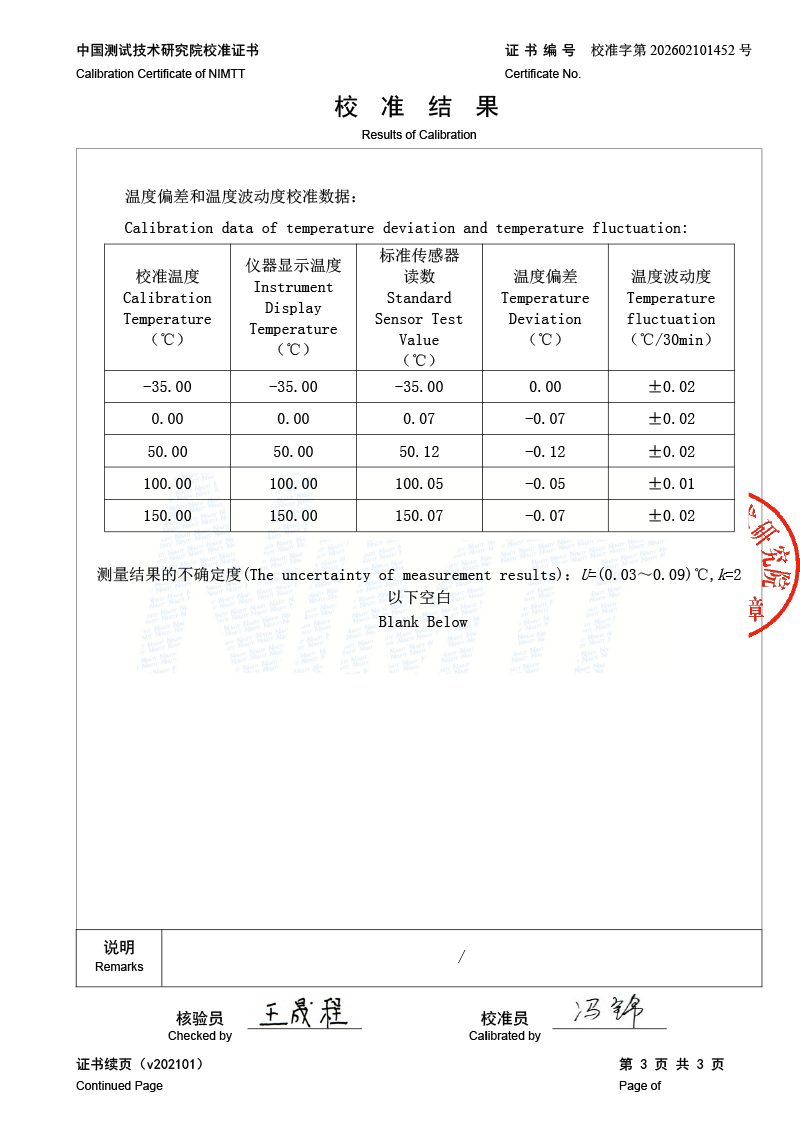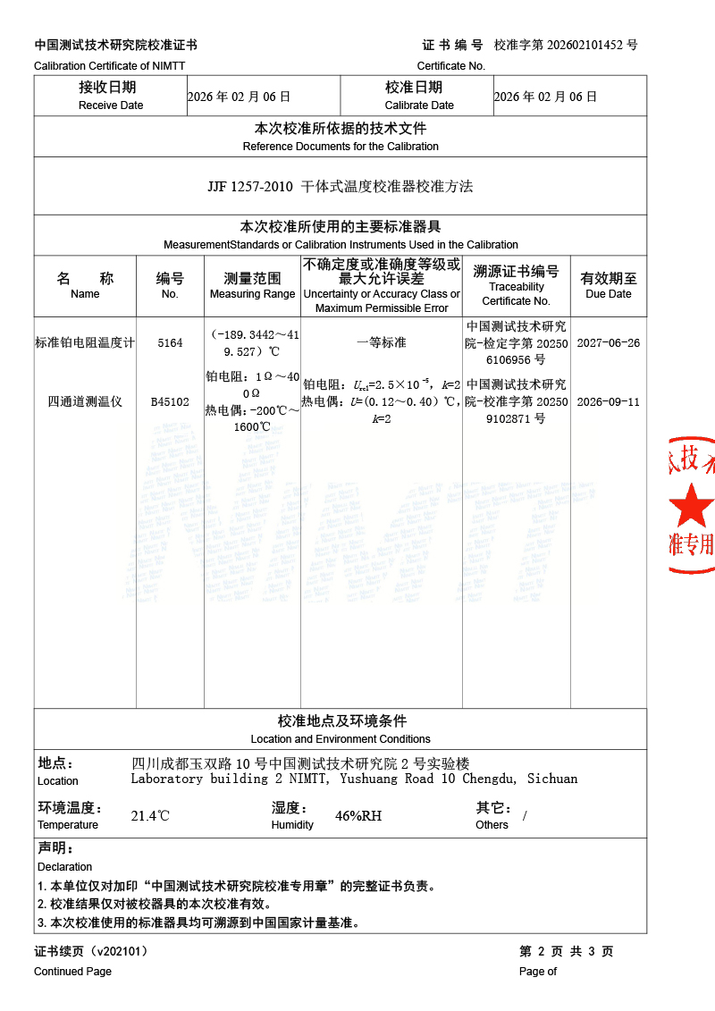 低溫干體-校準證書 2026-2-11 本文被閱讀 137 次