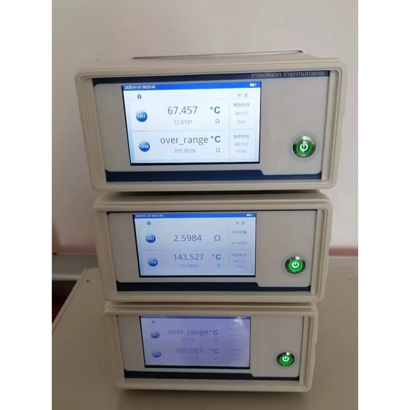 DY-08測溫儀是我公司研制的臺(tái)式雙通道測溫儀。儀器體積小,精度高,抗干擾能力強(qiáng)。支持25Ω/100Ω 標(biāo)準(zhǔn)鉑電阻溫度計(jì)(SPRT)以及多種分度的鉑電阻(PRT)。溫度測量范圍-200℃ ~ 850℃,單雙通道顯示可自由定義,內(nèi)建標(biāo)準(zhǔn)RTD曲線,符合ITS-90溫標(biāo),可直觀顯示溫度 示值、電阻示值等,具備RS232通訊端口可與PC軟件通訊,適用于實(shí)驗(yàn)室或現(xiàn)場測量。
