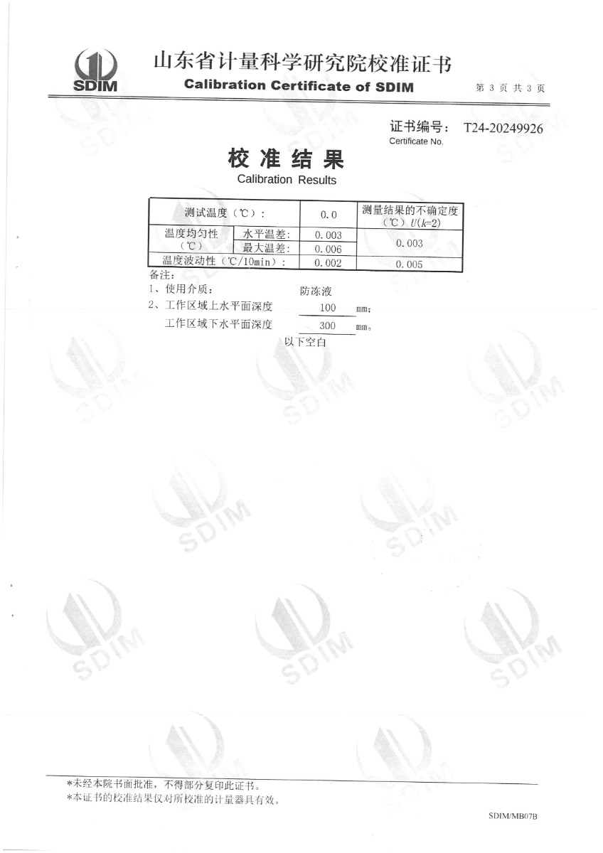 便攜式恒溫槽(0~95℃)校準(zhǔn)證書 2024-6-26 本文被閱讀 5988 次