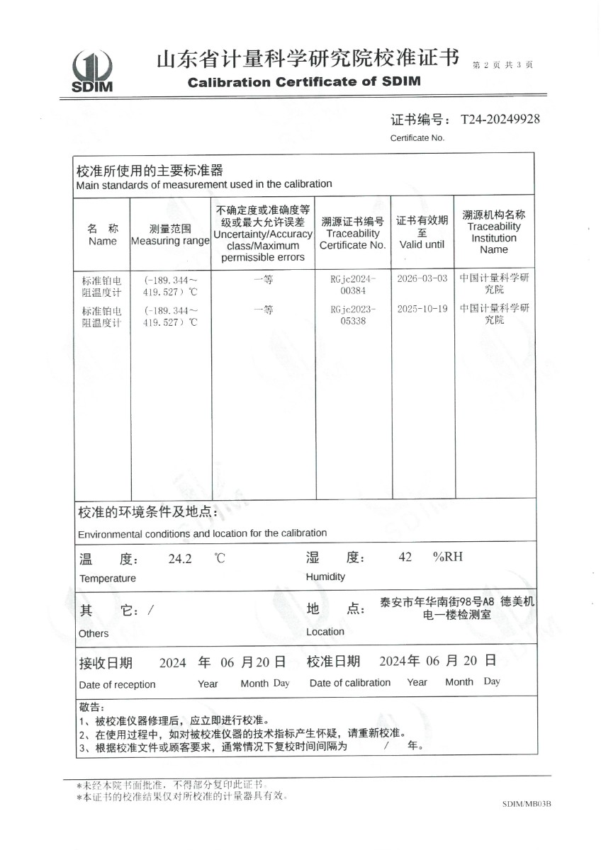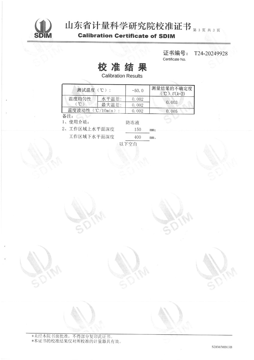 制冷恒溫槽(-50~95℃)校準證書 2024-6-26 本文被閱讀 6053 次