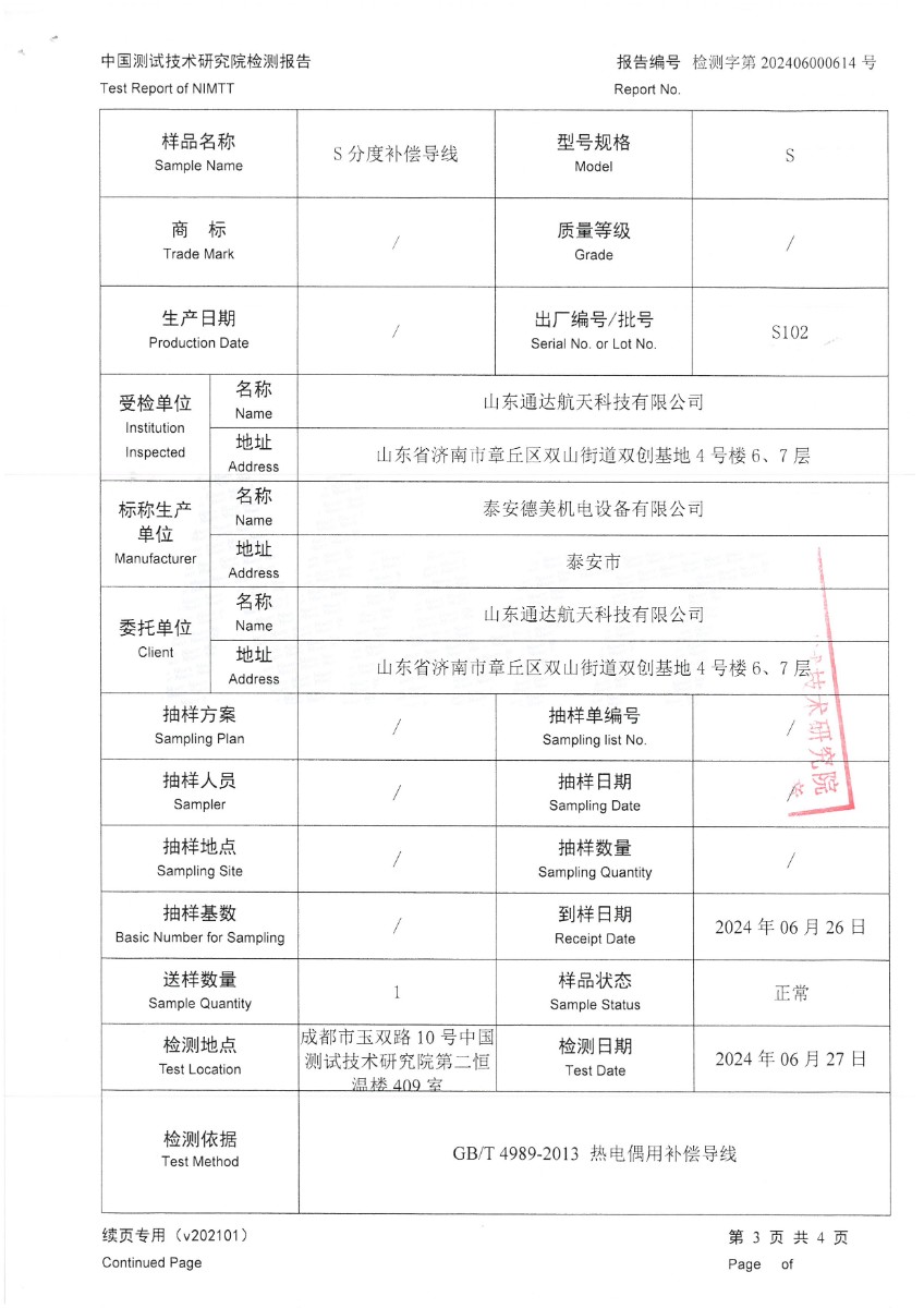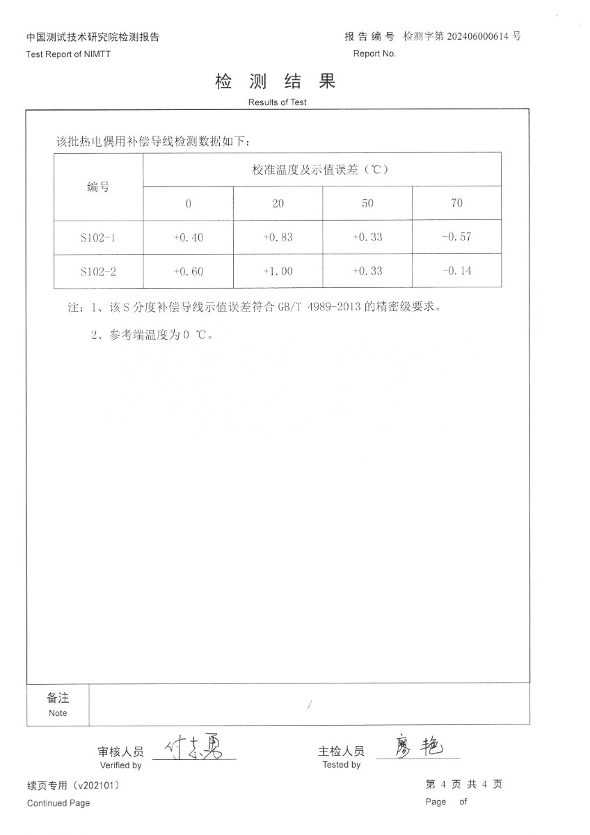 補償導線S分度檢測報告 2024-6-29 本文被閱讀 6016 次