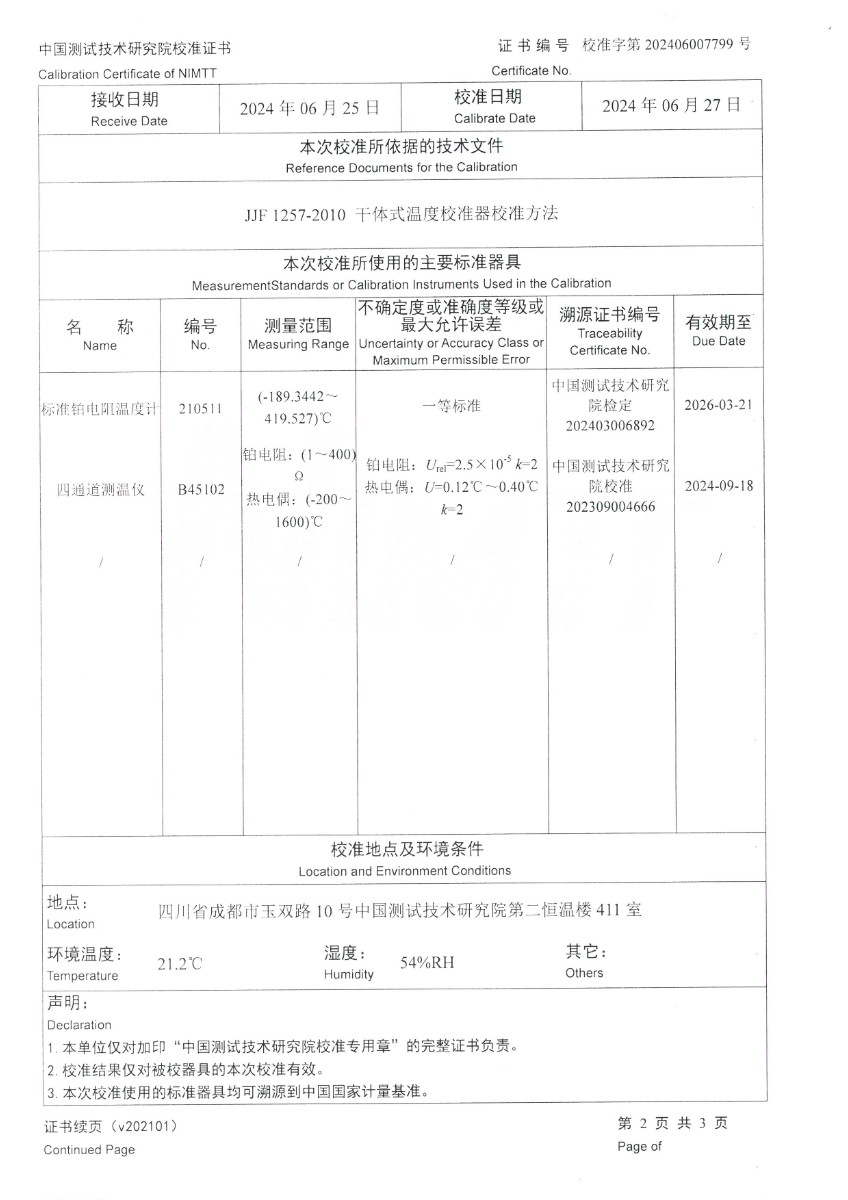 上一條:高溫干體爐(300~1200℃)校準證書下一條:冷鏡式露點儀校準證書