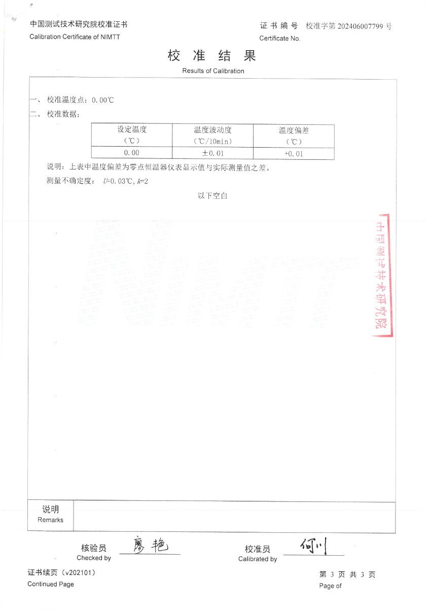 零點恒溫器校準證書 2024-7-1 本文被閱讀 6057 次