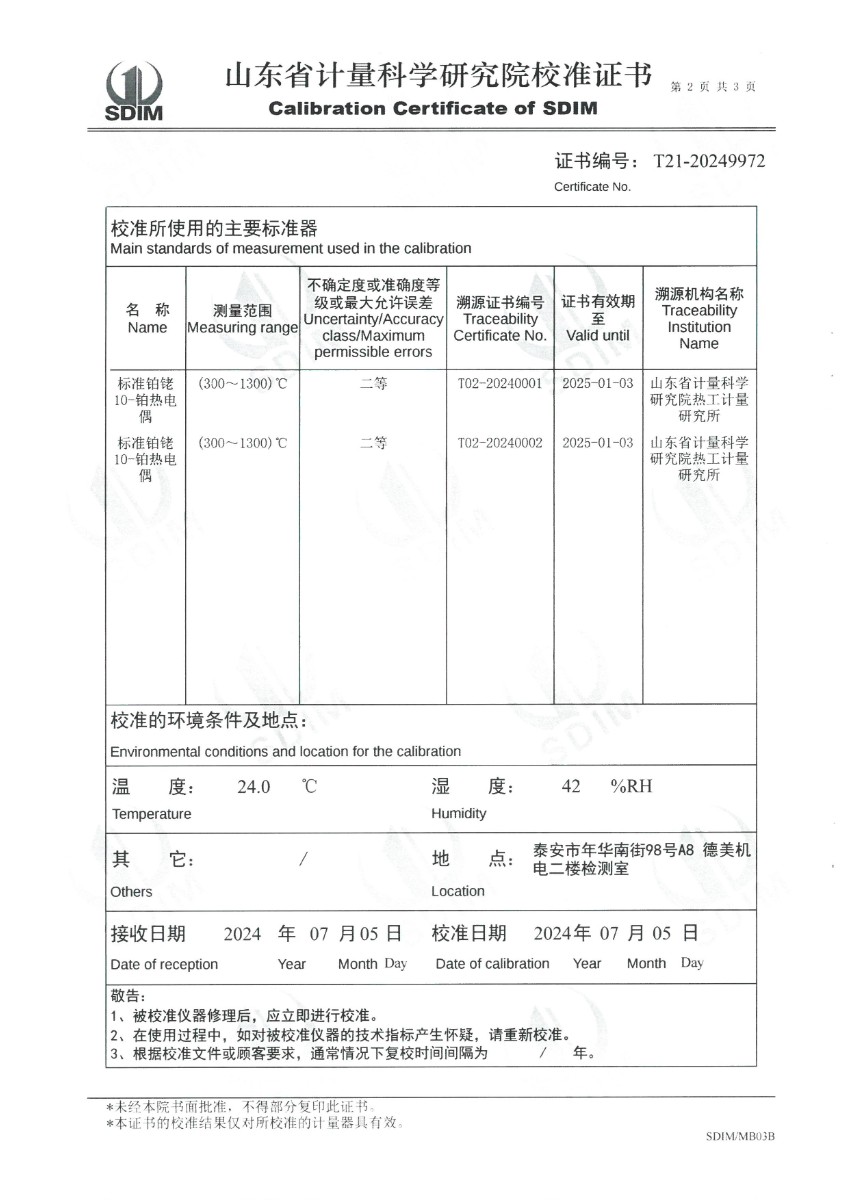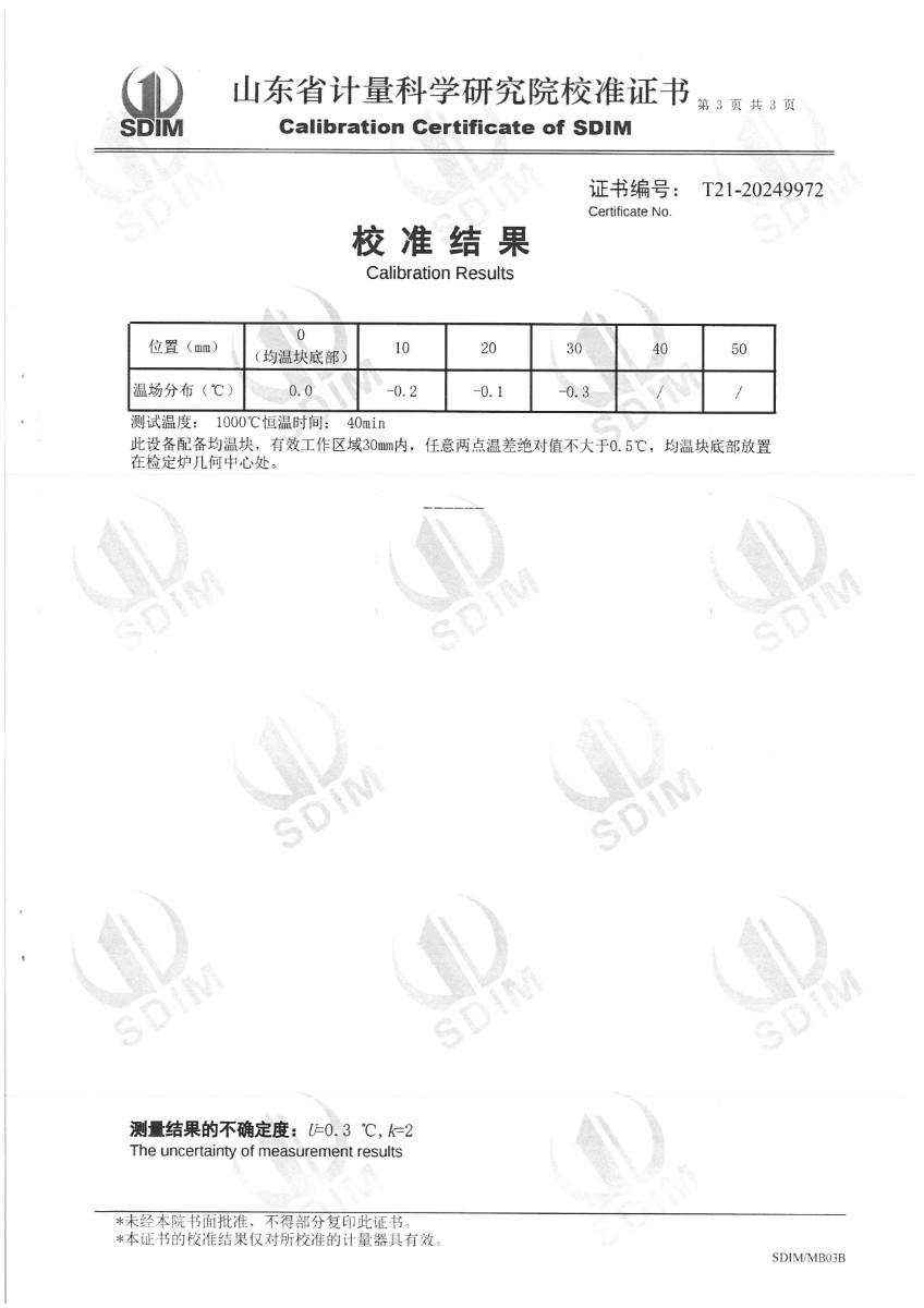 熱電偶檢定爐(300~1200℃)校準證書 2024-7-11 本文被閱讀 6629 次