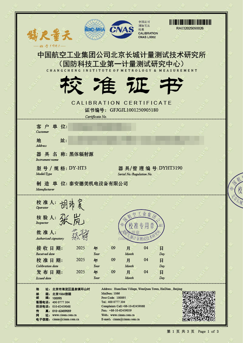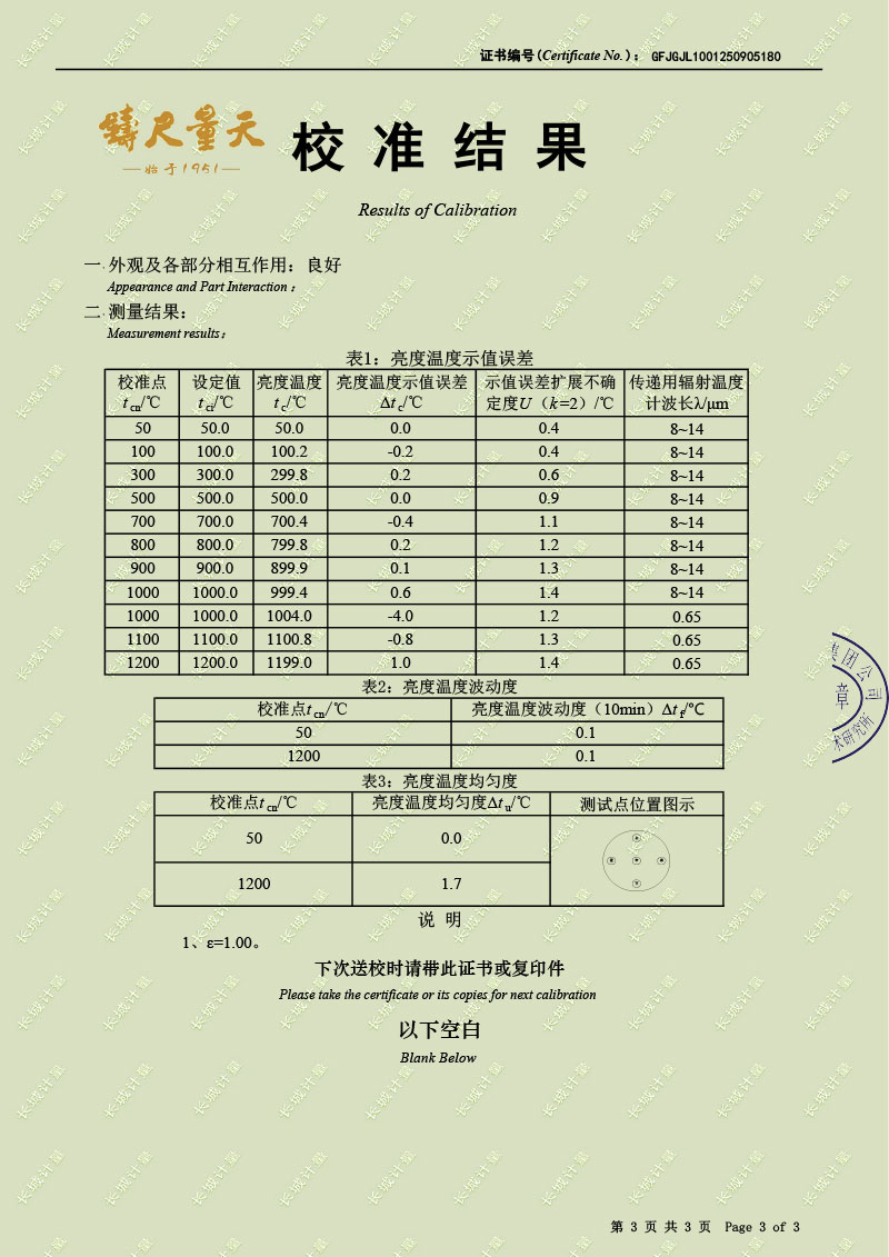 | 上一條:溫濕度檢定箱(-20-70℃)校準(zhǔn)證書 | 下一條:冷鏡式露點(diǎn)儀校準(zhǔn)證書 |
