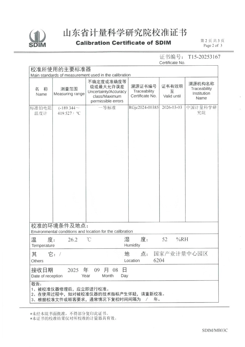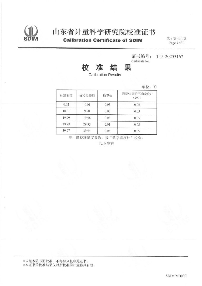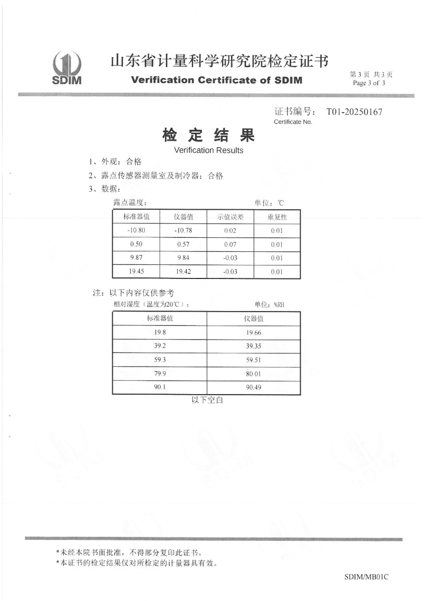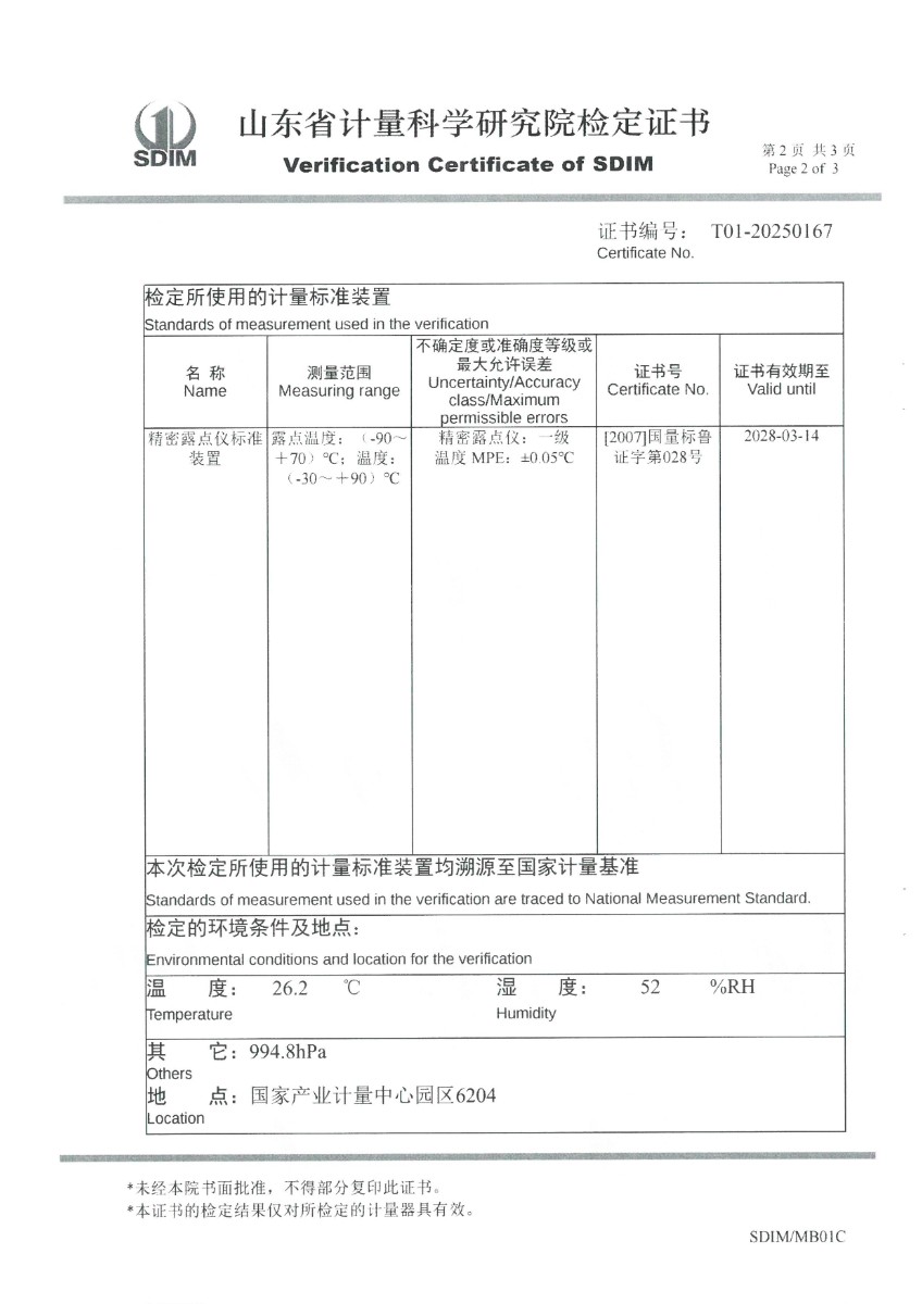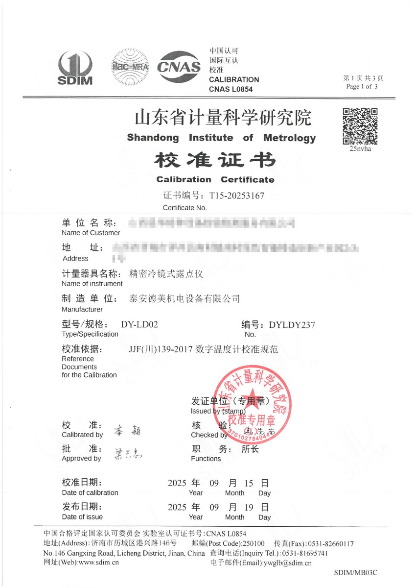 上一條:高精度數(shù)字溫度計(-20-100℃)校準證書下一條:冷鏡式露點儀校準證書