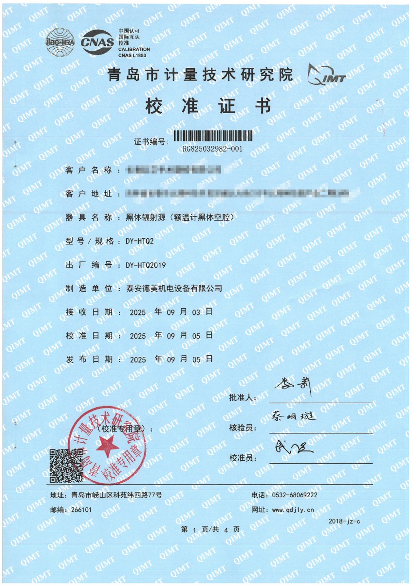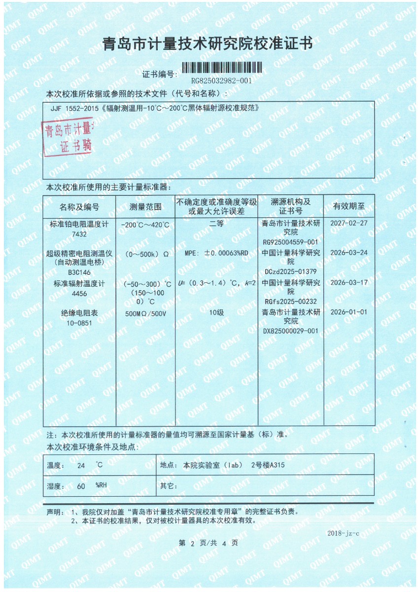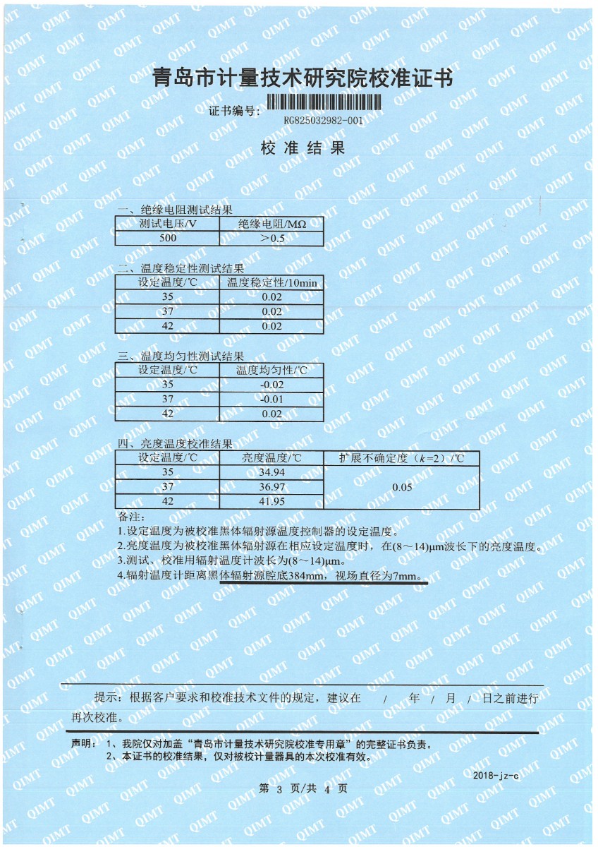 額溫計黑體空腔-校準證書 2025-9-23 本文被閱讀 1684 次