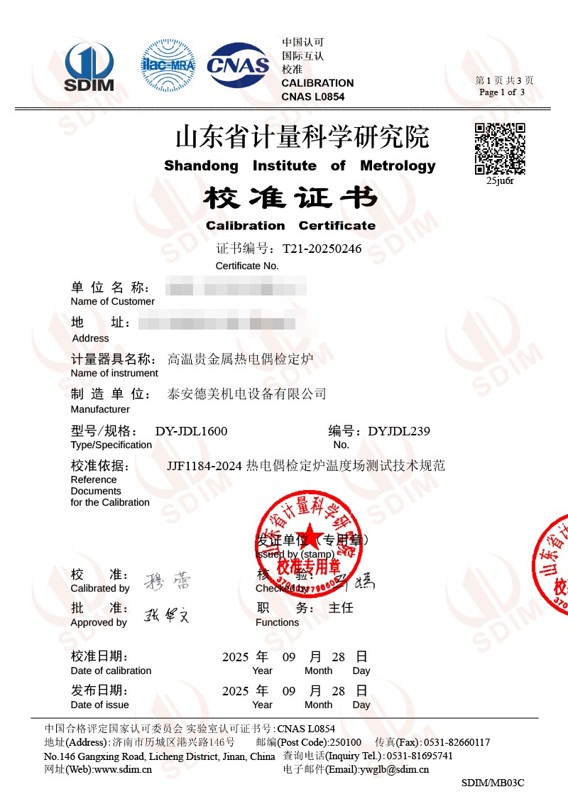 高溫貴金屬熱電偶檢定爐(800-1600℃)校準(zhǔn)證書 2025-10-14 本文被閱讀 926 次
