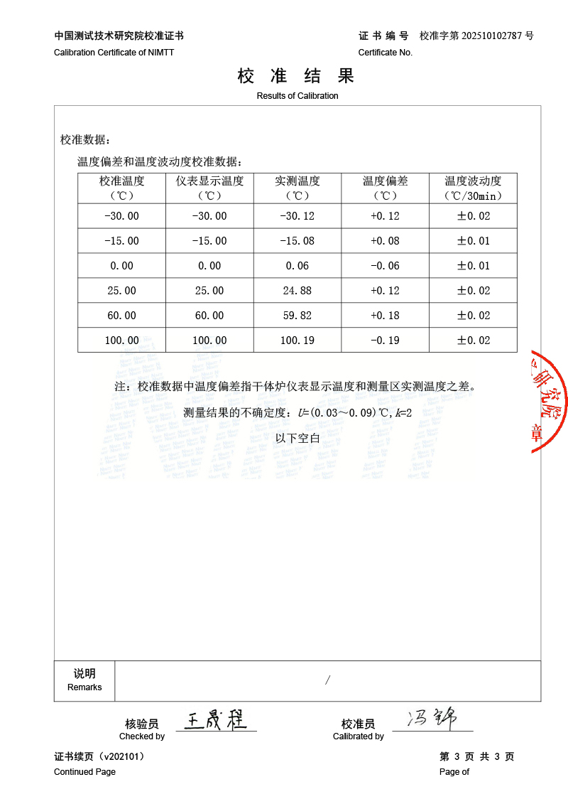 | 上一條:超低溫面源黑體爐(-40-80℃)校準(zhǔn)證書 | 下一條:冷鏡式露點(diǎn)儀校準(zhǔn)證書 |