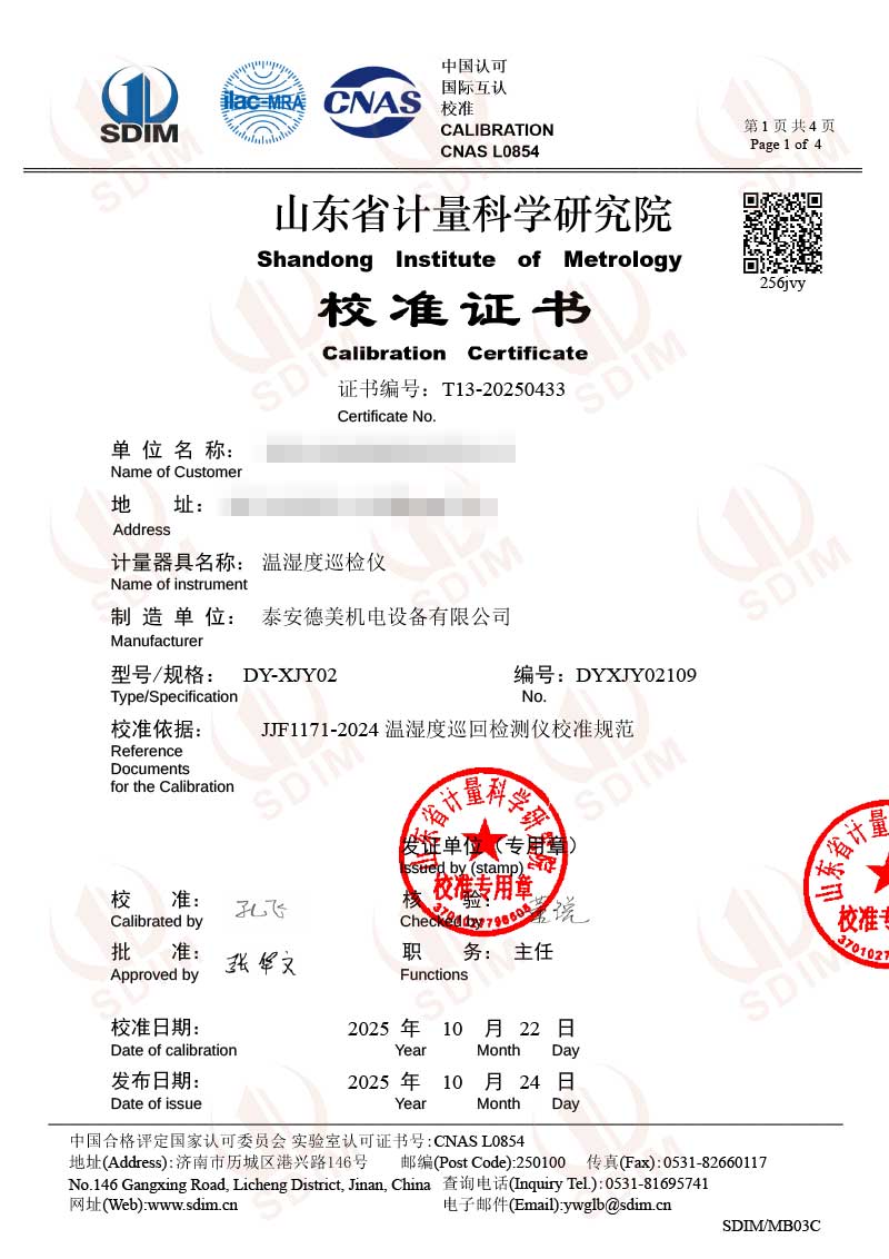 溫濕度巡檢儀校準(zhǔn)證書 2025-10-30 本文被閱讀 460 次