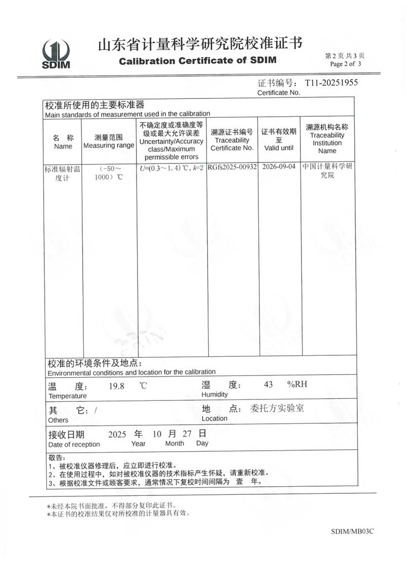 | 上一條:溫濕度檢定箱(-5~65℃)校準(zhǔn)證書 | 下一條:冷鏡式露點(diǎn)儀校準(zhǔn)證書 |