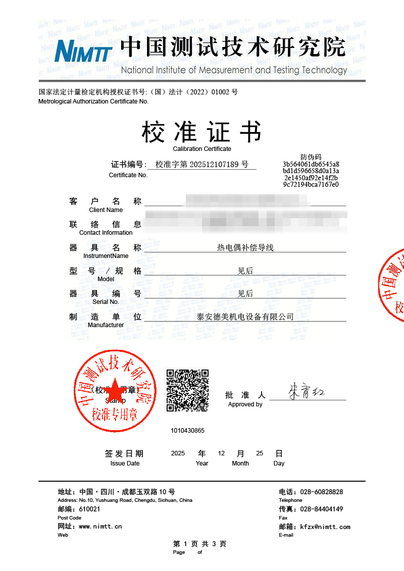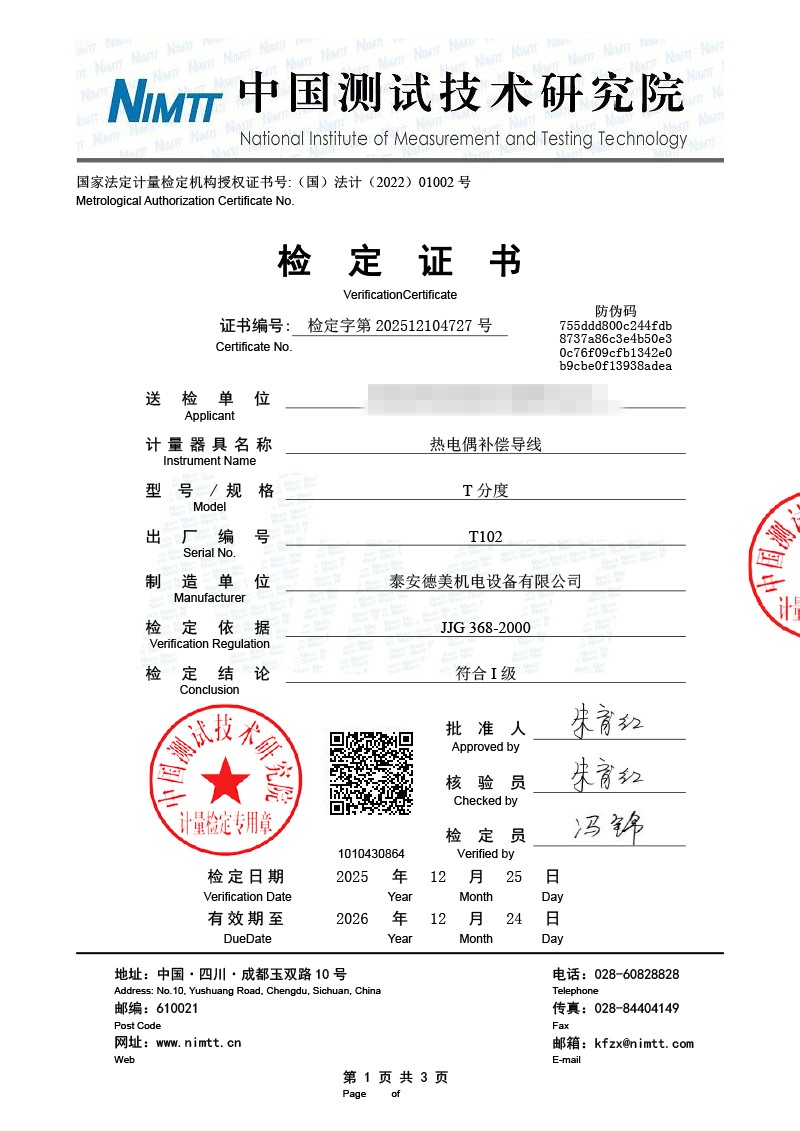 | 上一條:標(biāo)準(zhǔn)水銀溫度計(jì)檢定證書(shū) | 下一條:露點(diǎn)儀校準(zhǔn)系統(tǒng)校準(zhǔn)證書(shū) |