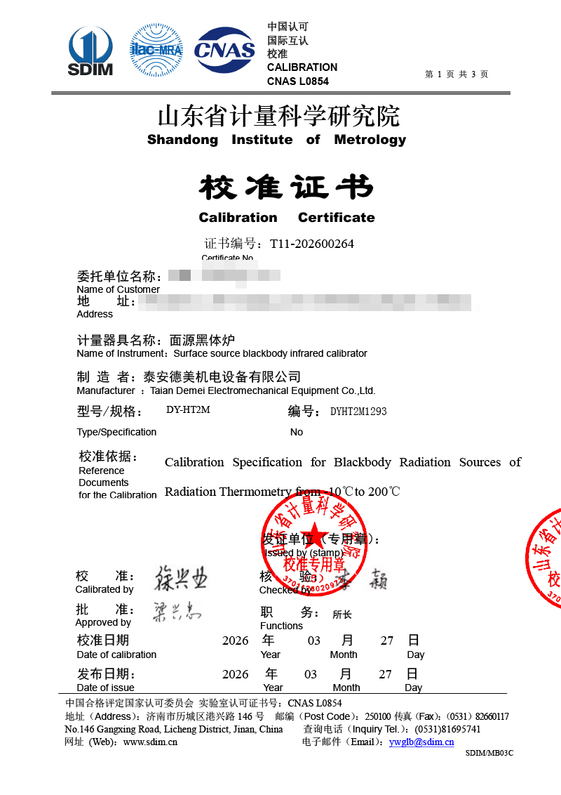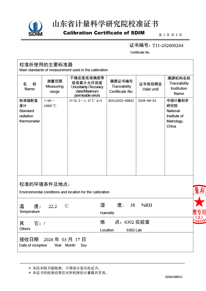 面源黑體爐-校準(zhǔn)證書 2026-4-7 本文被閱讀 308 次