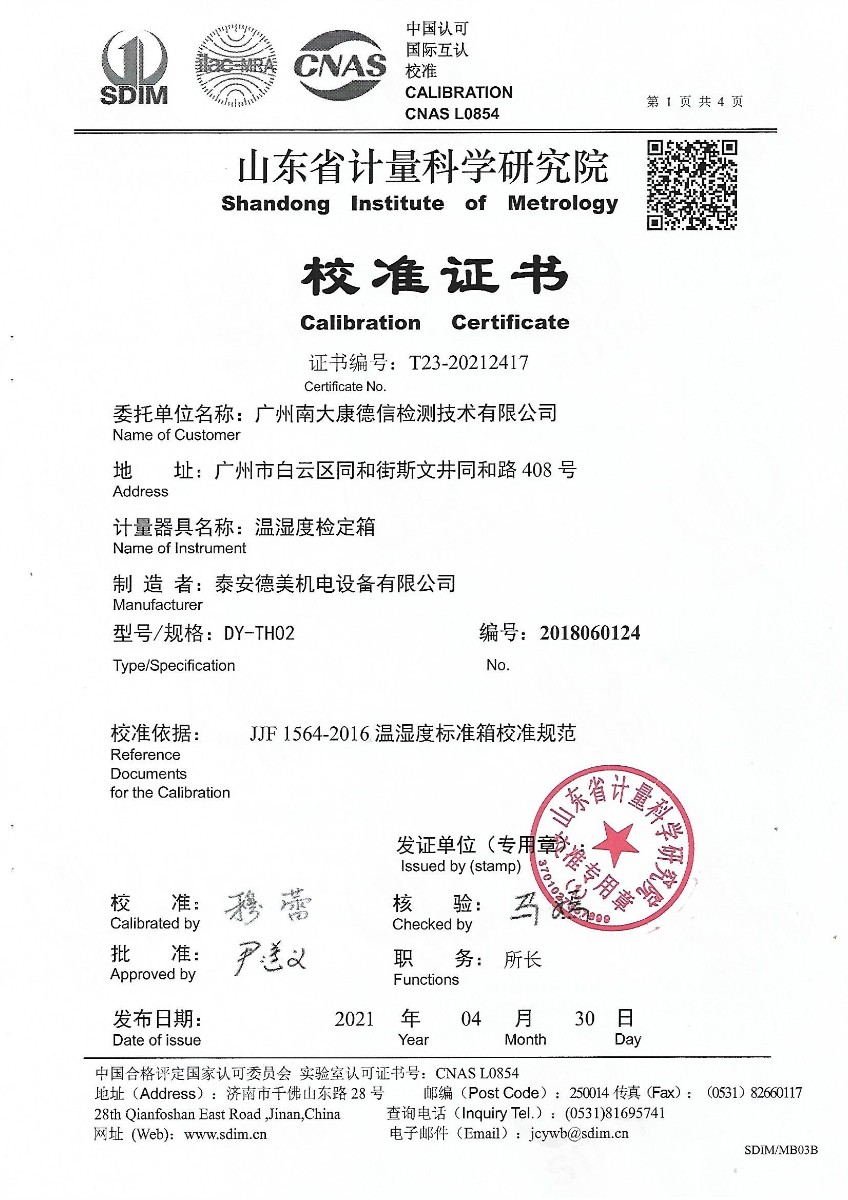 | 上一條:山東華源工程設(shè)備安裝有限公司-干體溫度校驗爐 | 下一條:智能干體儀(六位半精度)校準(zhǔn)證書 |