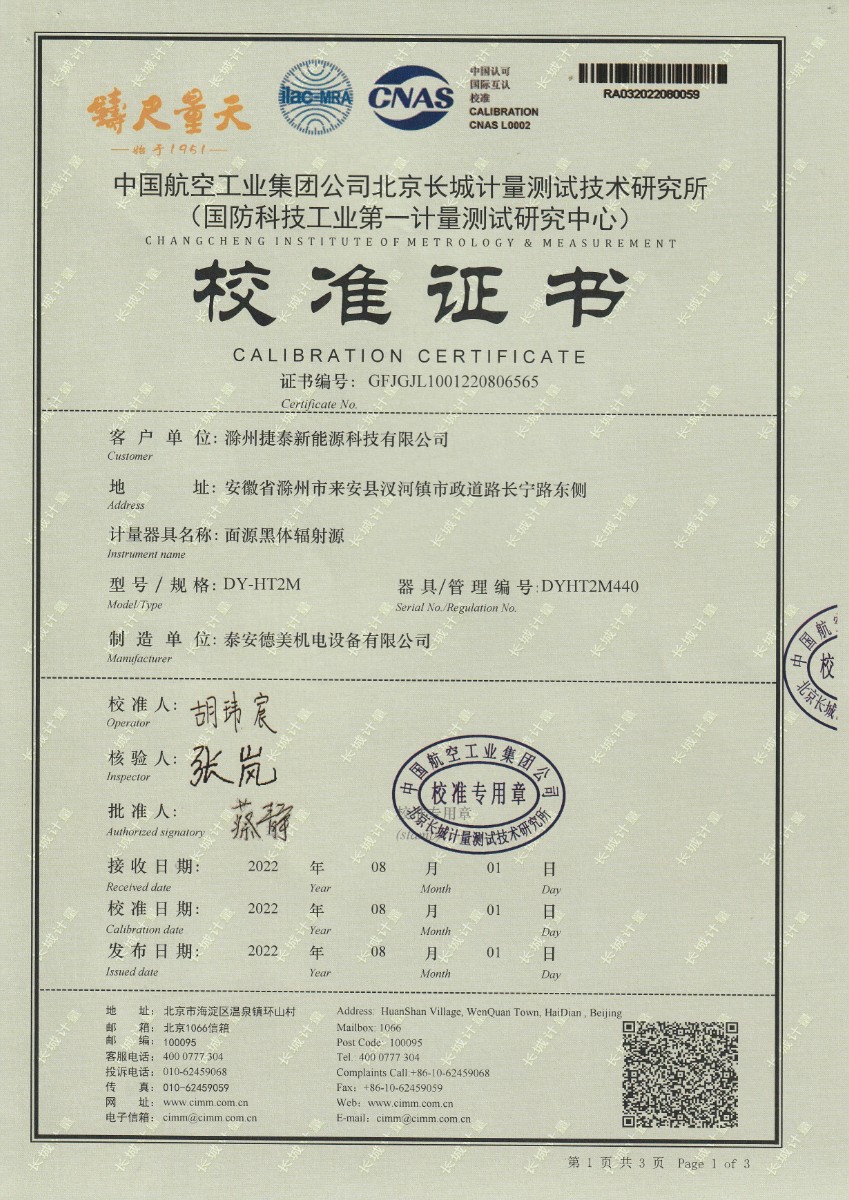 滁州捷泰新能源科技有限公司-面源黑體爐 2022-8-17 本文被閱讀 14524 次