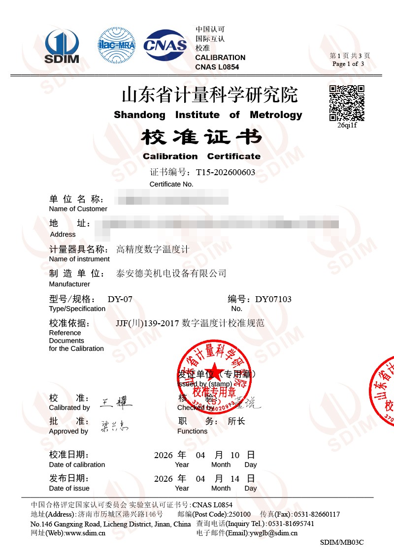 高精度數字溫度計-校準證書 2026-4-14 本文被閱讀 80 次