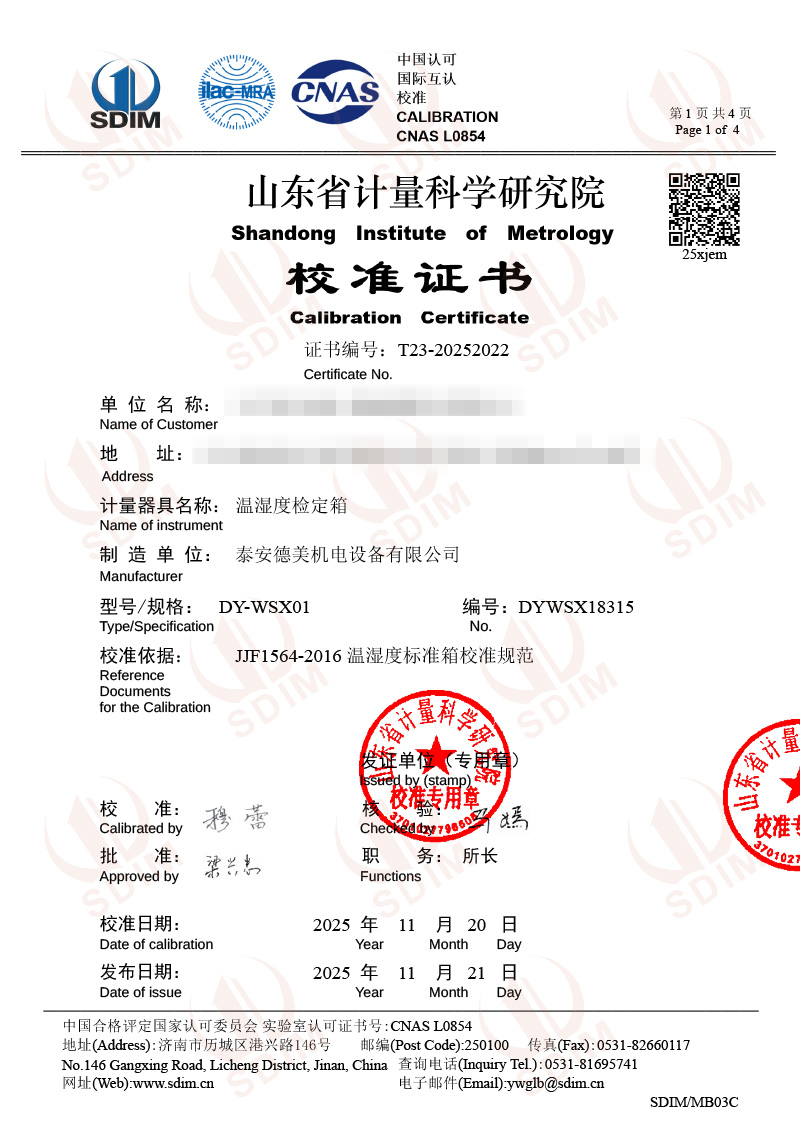 上一條:便攜溫度檢定箱(-30℃~50℃)校準證書下一條:露點儀檢定、校準證書